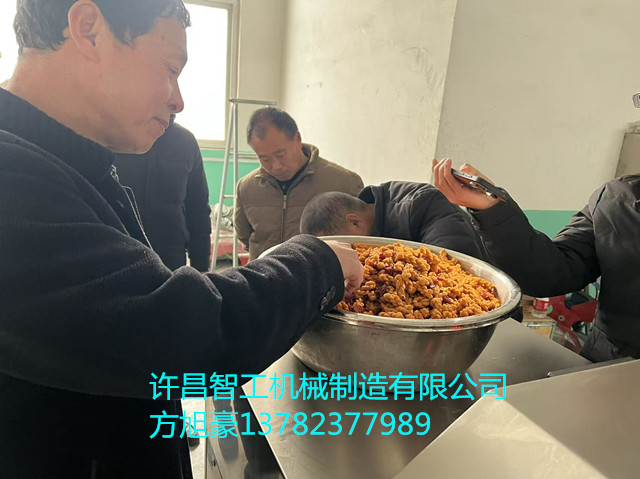 2025年12月23日,河南滑县客户带小麻花来厂试机电磁炒货机炒制。